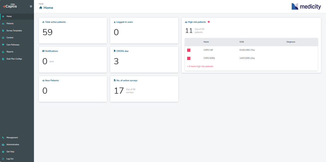 eCaptis is our digital patient journey monitoring platform for clinicians to monitor their patients after they have left the hospital or medical practice. You can find more information on our website.
